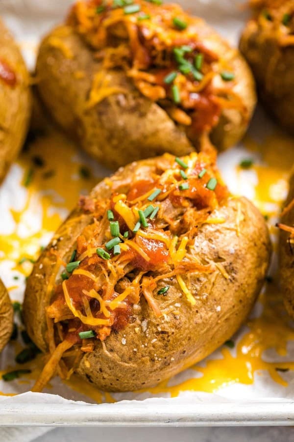 The filling can be made while the potatoes are in the oven for the first round, so the whole thing comes together in about twenty minutes of active work once the prep is done. It also reheats well, which is rare for baked potato dishes.