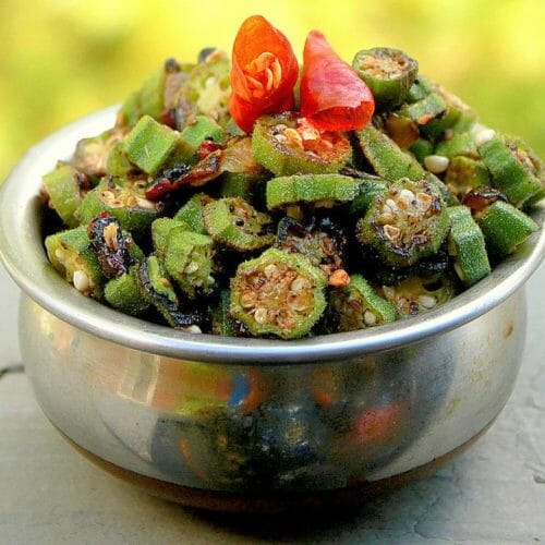 This dish is packed with fiber from okra and lentils, vitamin C from green mango, and protein from toor dal. It’s low in fat and high in minerals like iron and potassium. The spices offer anti-inflammatory benefits, while garlic and ginger add immune-boosting properties.