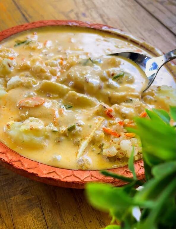 Mixed Vegetables in Coconut Sauce is one of those comforting recipes that feels both familiar and special at the same time. The vegetables soften gently in coconut milk while curry leaves and toasted spices infuse the sauce with fragrance. I like how the eggplant absorbs the creamy liquid, turning tender and silky.