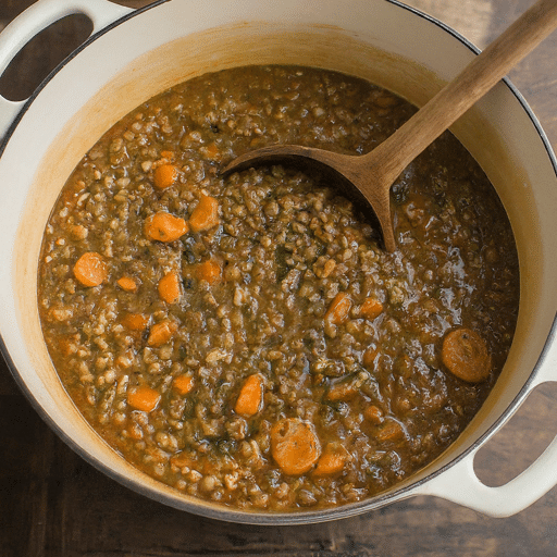 Barley and Lentil Stew is a rich and hearty meal for people with diabetes. Barley is a whole grain packed with fibre and aids in maintaining stable blood sugar levels.