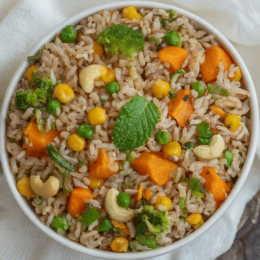 Brown Rice Vegetable Pulao is a tasty and healthful lunch option for people with diabetes. It features brown rice, known for its high fibre content and a colourful range of vegetables. Vegetables add to the fibre content and contain essential vitamins and minerals.