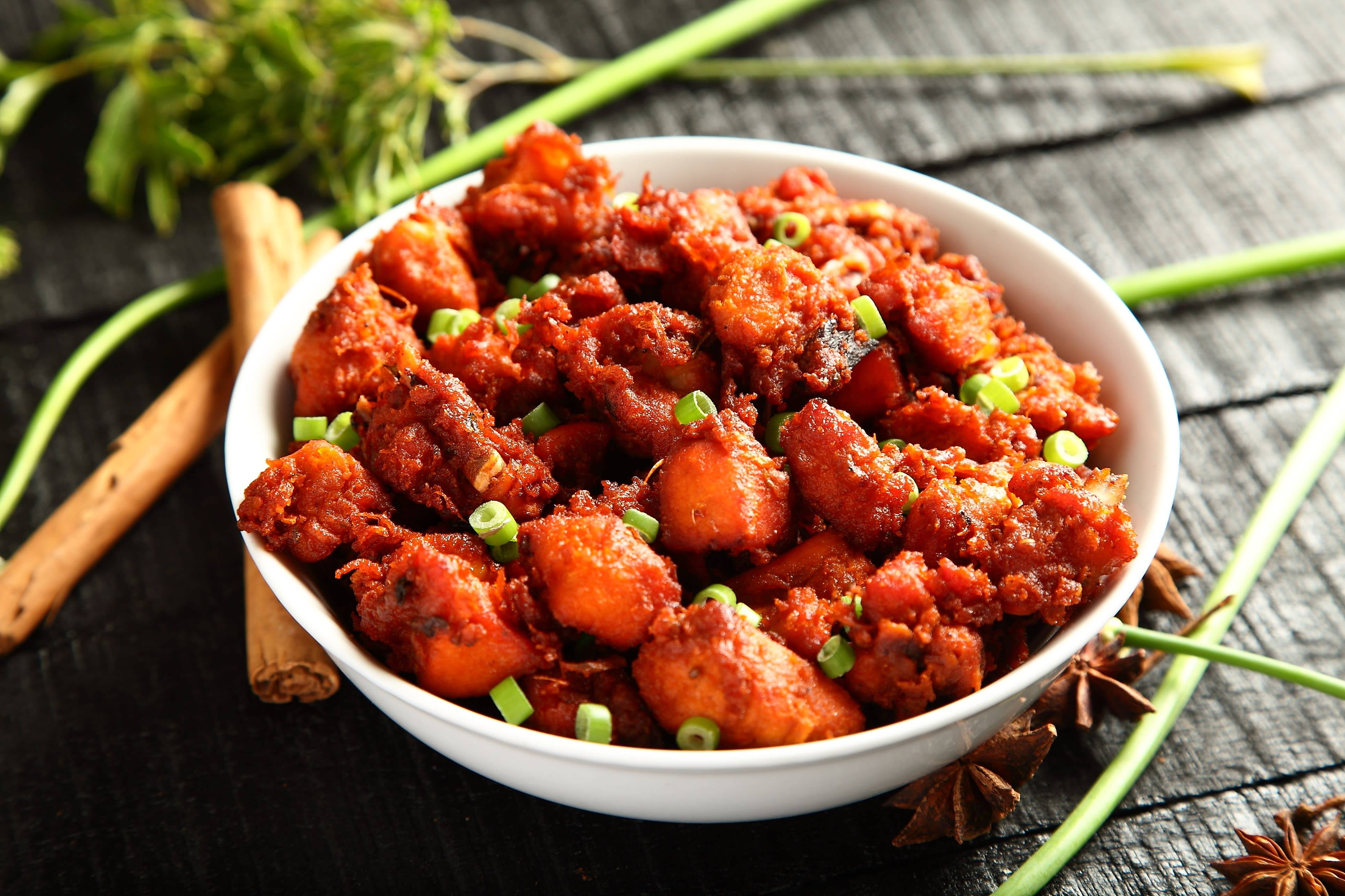 - Heat oil in a deep pan and fry onion till dark brown. Drain excess oil.